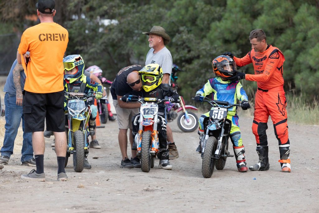 A big track, big turnout, and the stands packed with over 700 spectators in attendance. The flat track race was a big attraction for fair goers in Quincy, CA. The track was fast with a nice wide groove that set the stage for some great main event racing. The first race was the Pee-Wee class. The combined Classes 1,2, and 4 together with 125e James Weltzin wining the 50cc Pee-Wee Class 1 for the second week in a row, 156e Ryder Meiring winning the 50cc Pee-Wee Class 2, and 279y Eloise Hedrick winning the 50cc Pee-Wee Class 4(XR/PW50s).